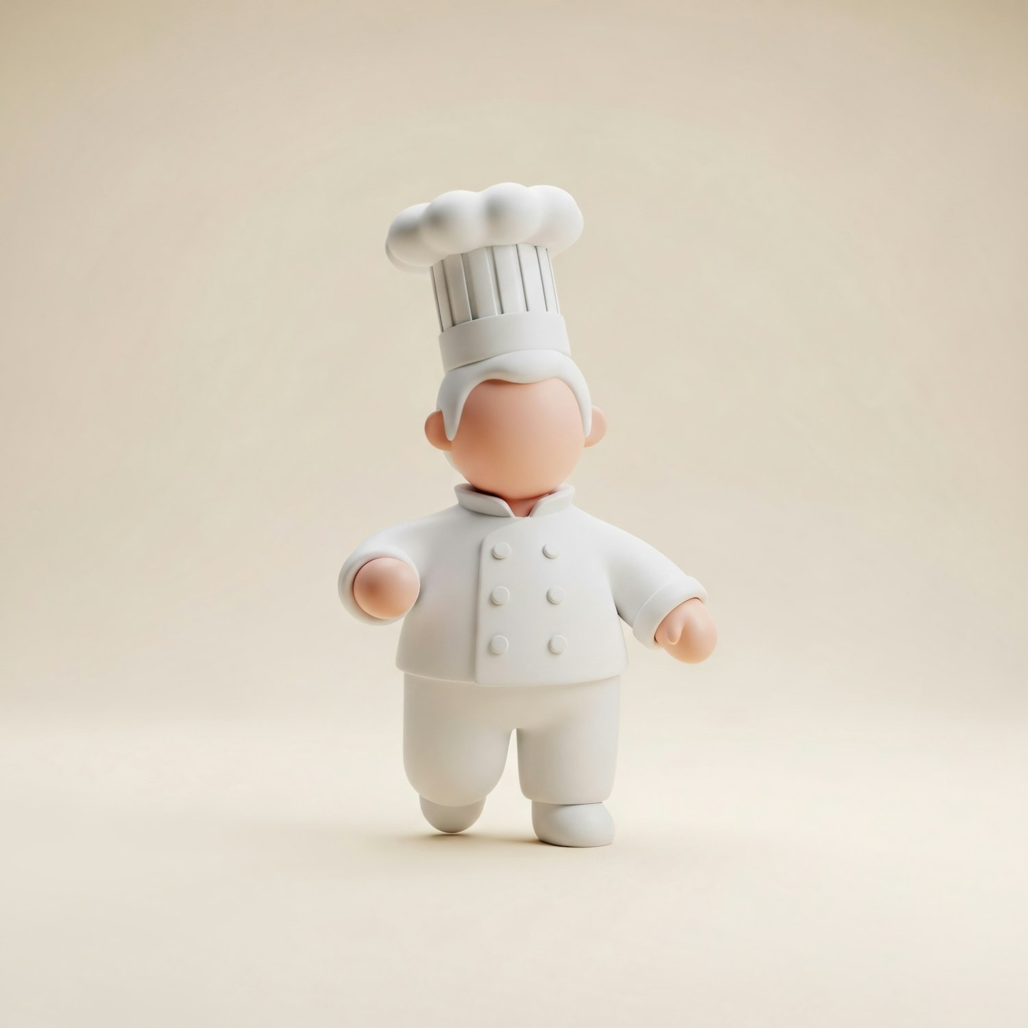 A minimalist 3D illustration of a chef in a white uniform and hat, set against a neutral background, showcasing clean design.