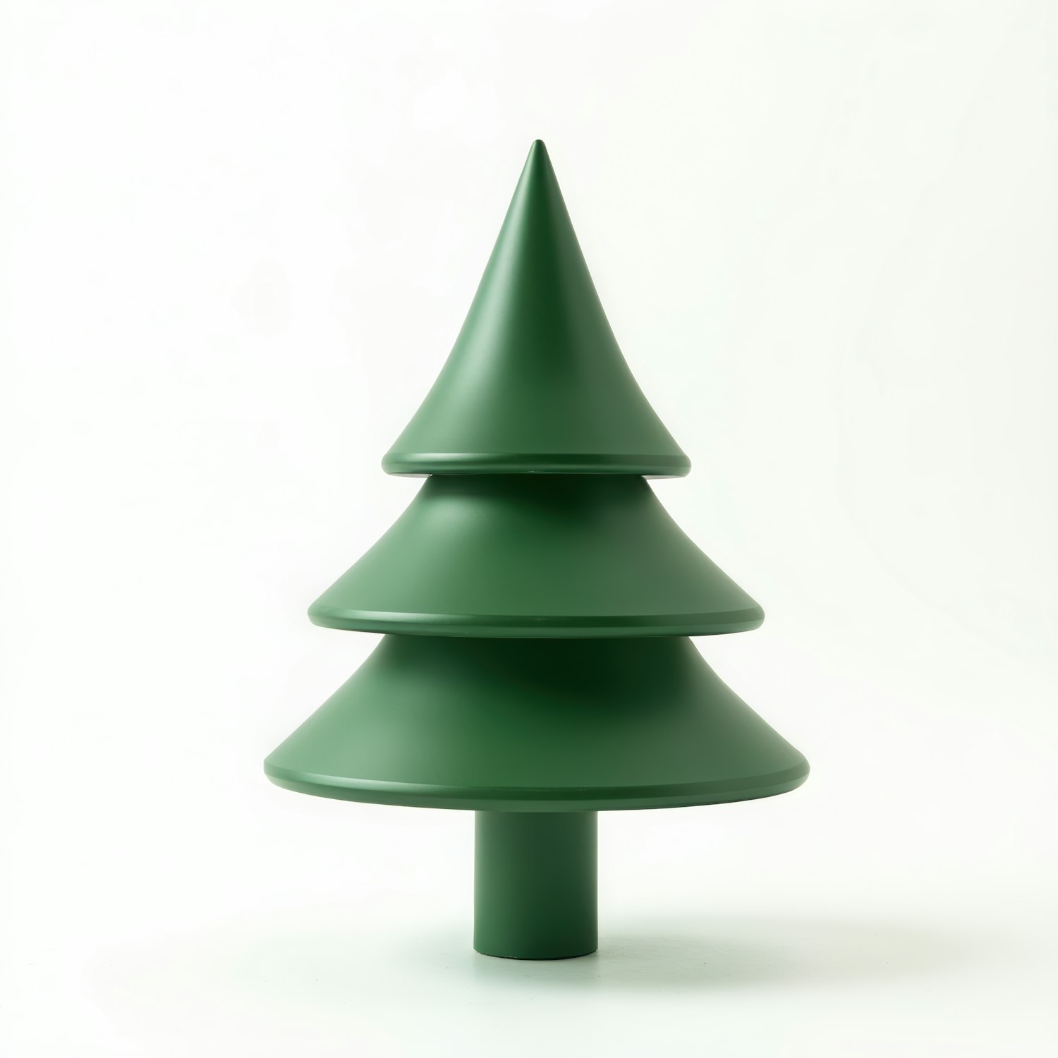 Minimalist green Christmas tree sculpture with tiered conical design on a white background.