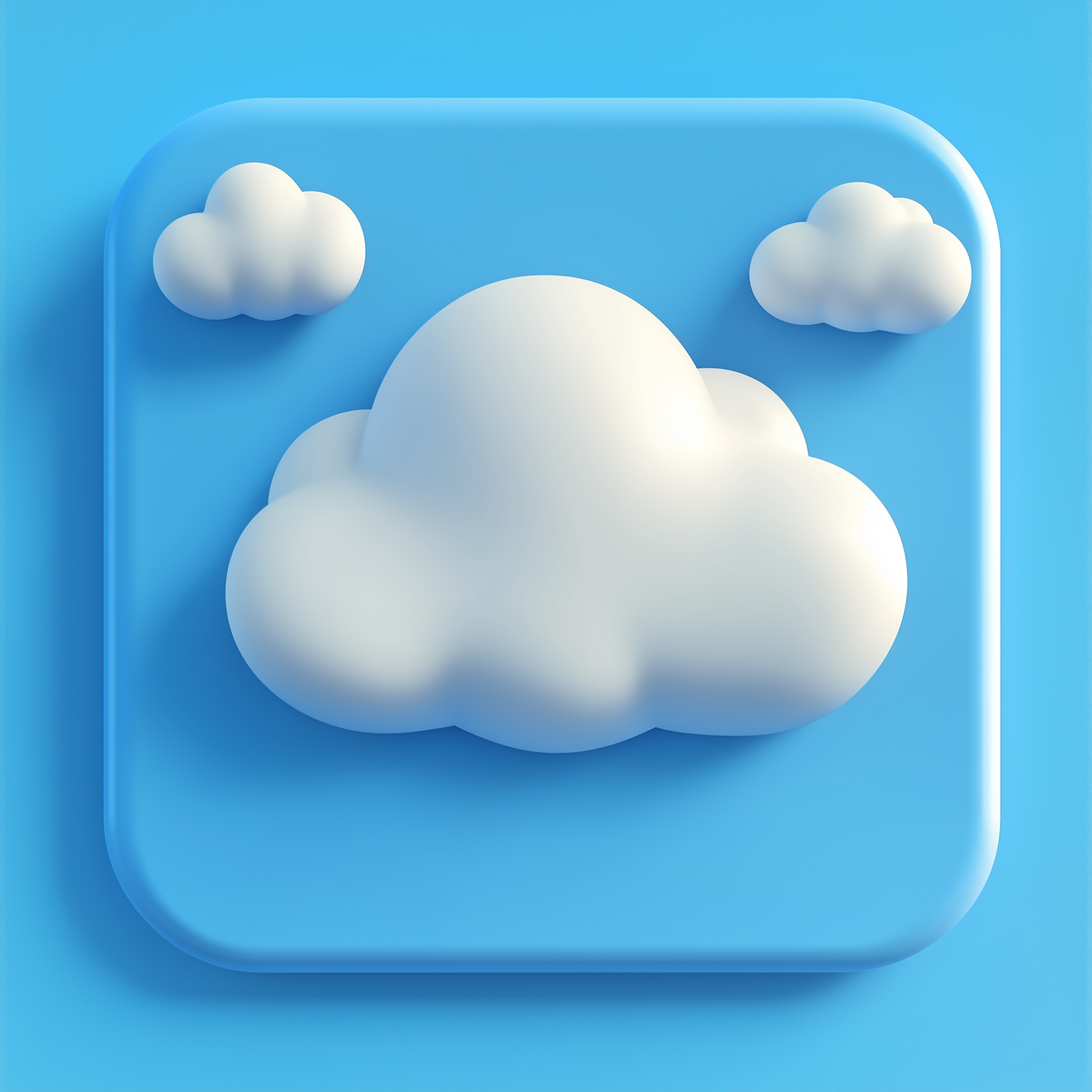 Minimalist 3D cloud icon on a vibrant blue background, perfect for cloud computing, weather, or digital storage themes.