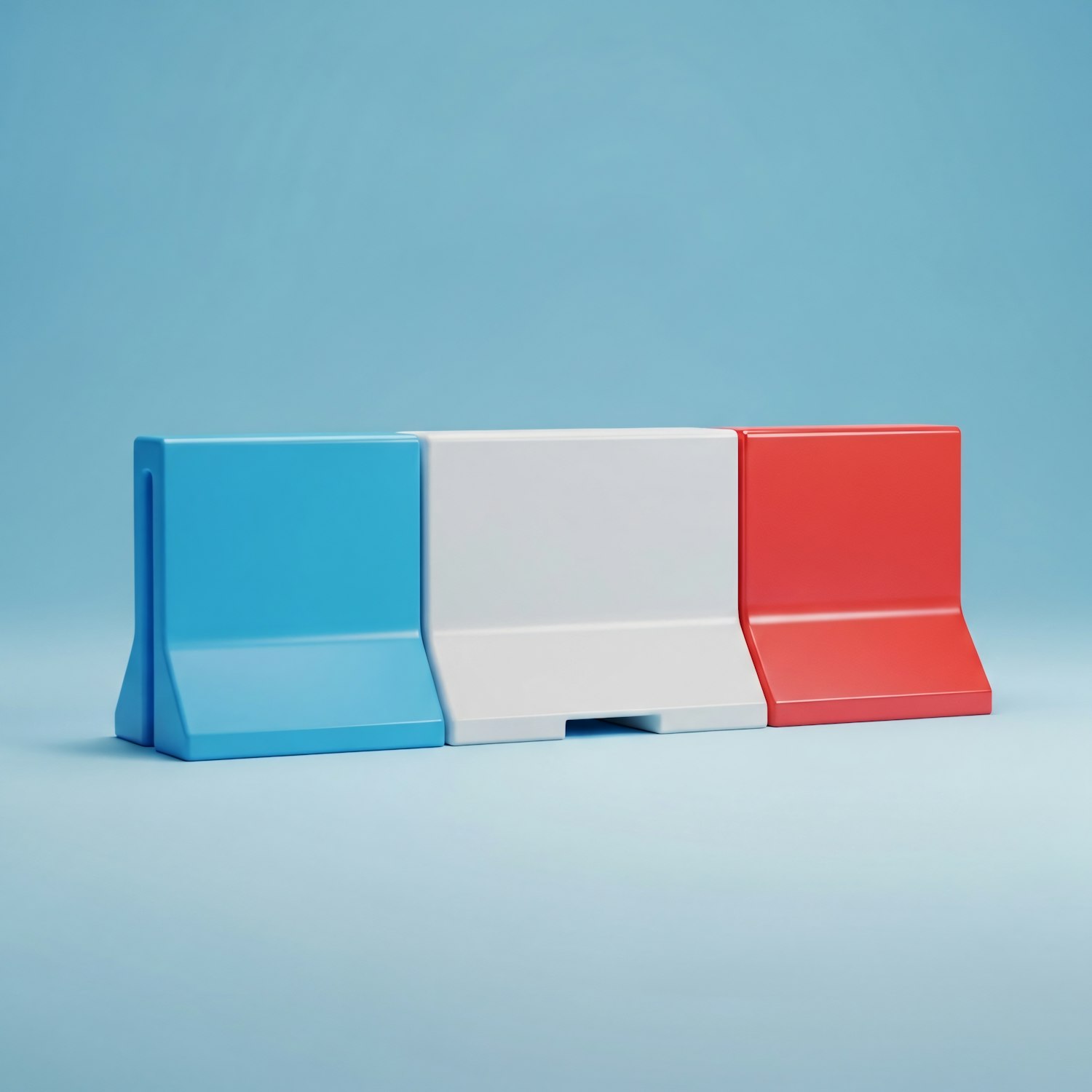 Minimalist design of blue, white, and red blocks on a light blue background, showcasing clean lines and vibrant colors.