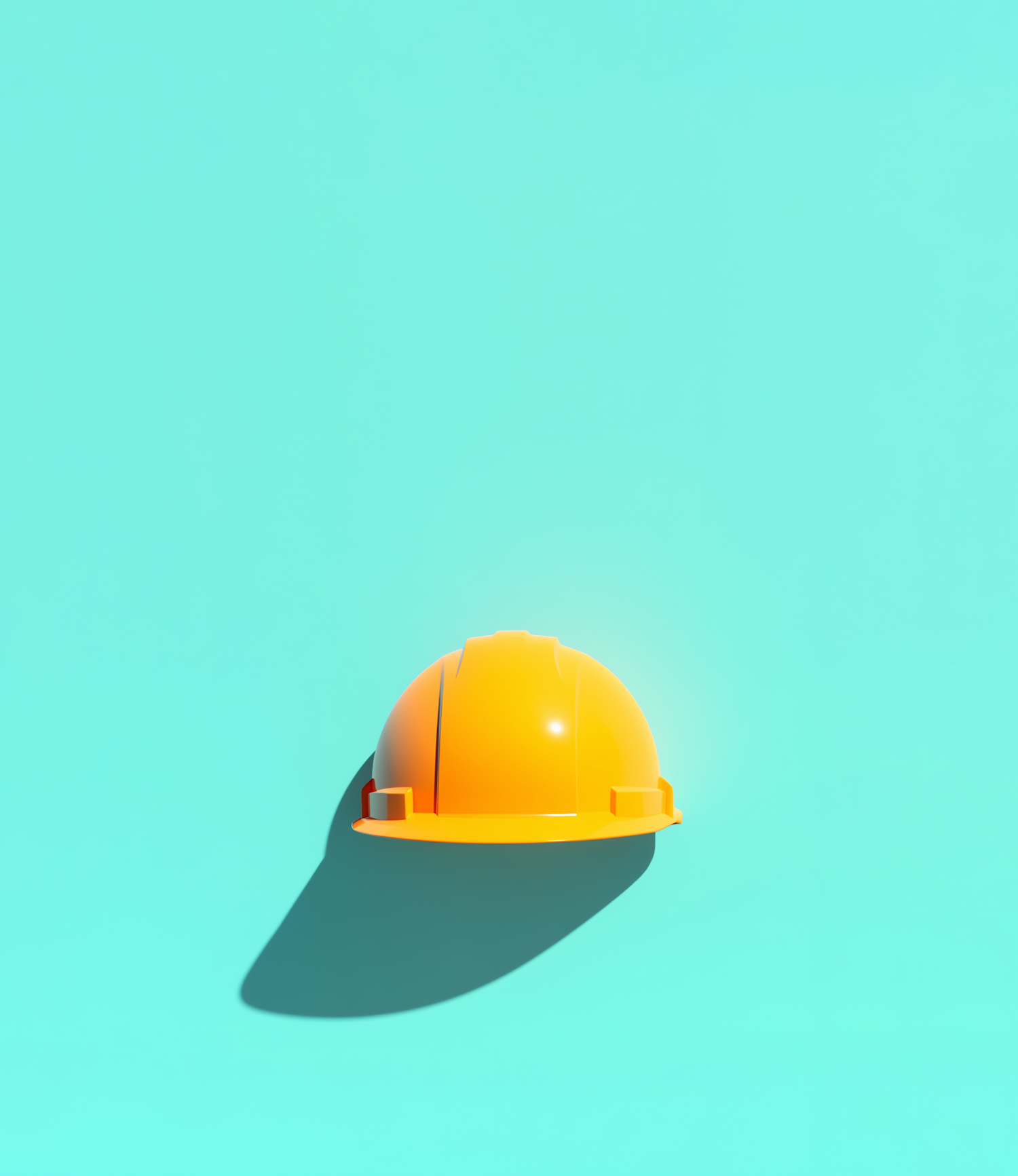 Bright yellow hard hat on a turquoise background with a shadow, creating a striking contrast and minimalist design.