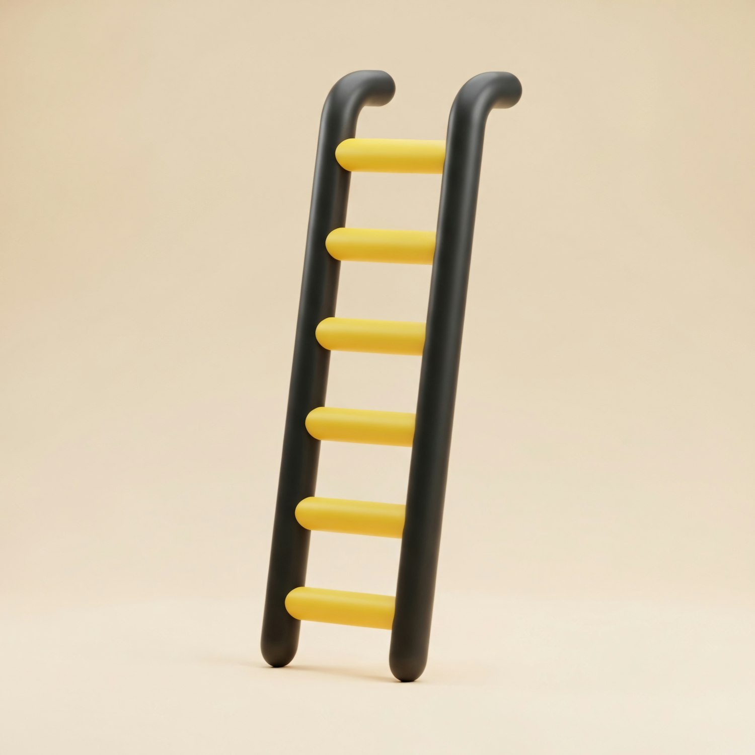 A modern black and yellow ladder with a minimalist design, standing against a beige background.