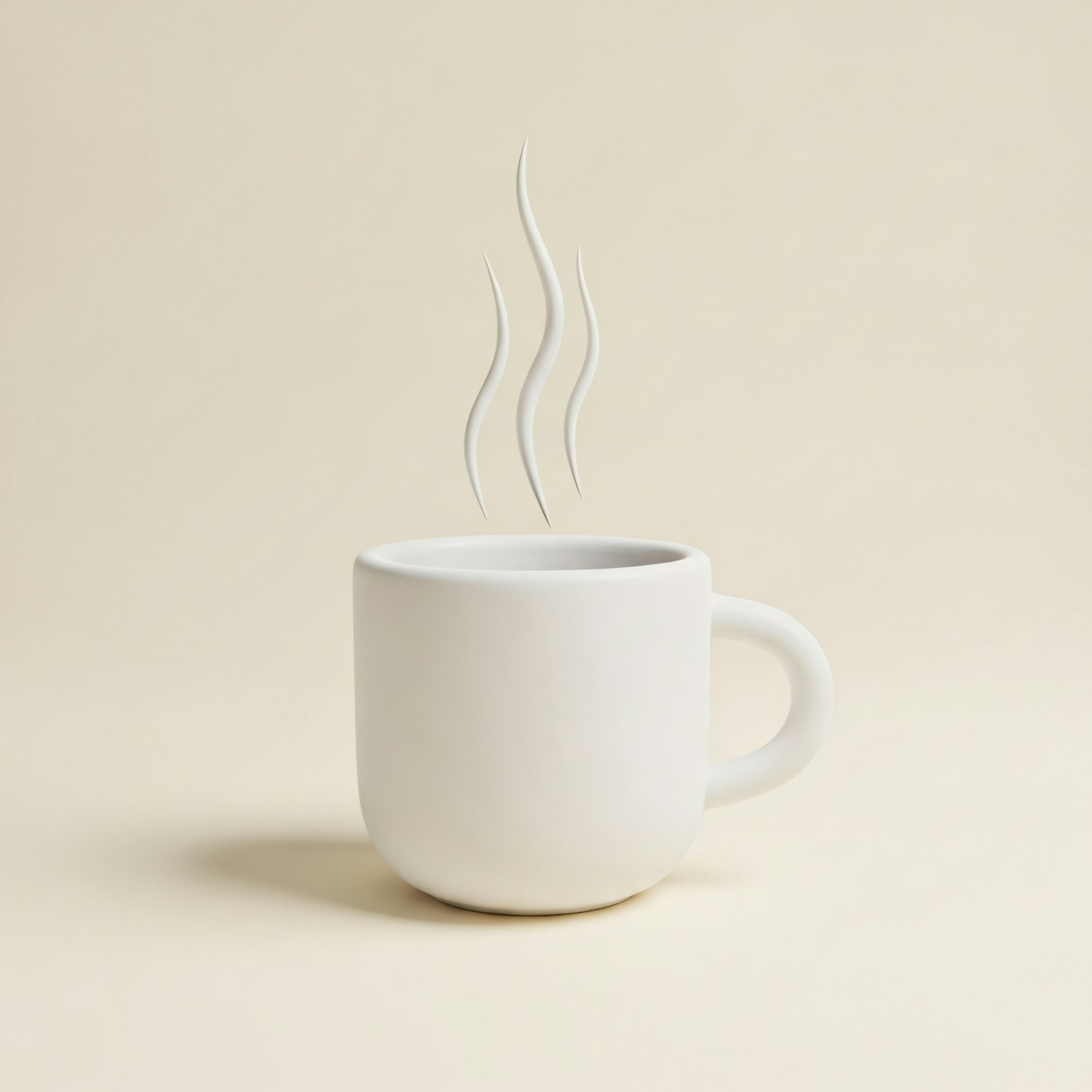 A clean and minimalistic image of a white mug with steam rising, set against a soft beige background, perfect for coffee or tea lovers.
