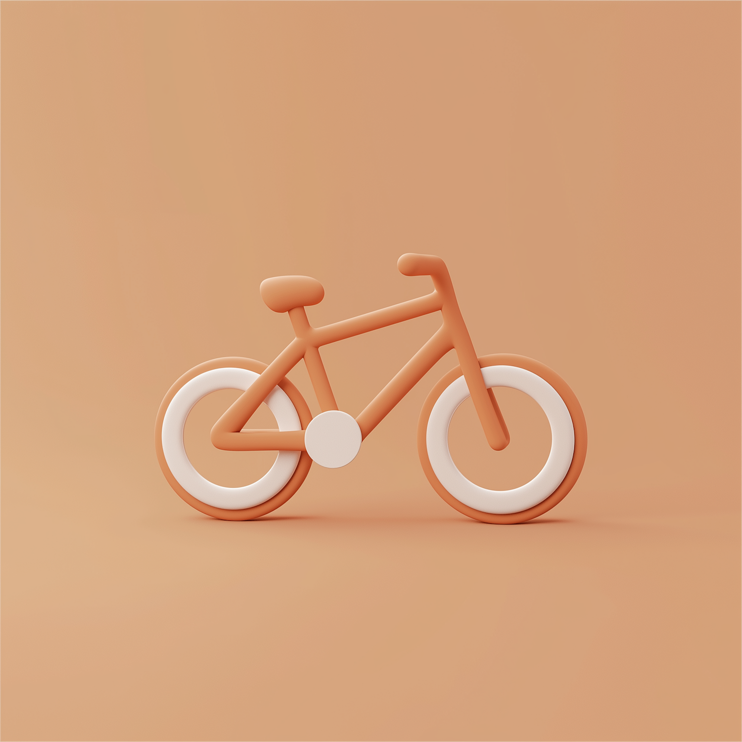 Minimalist 3D illustration of an orange bicycle with white accents on a solid orange background, showcasing a clean and modern design.