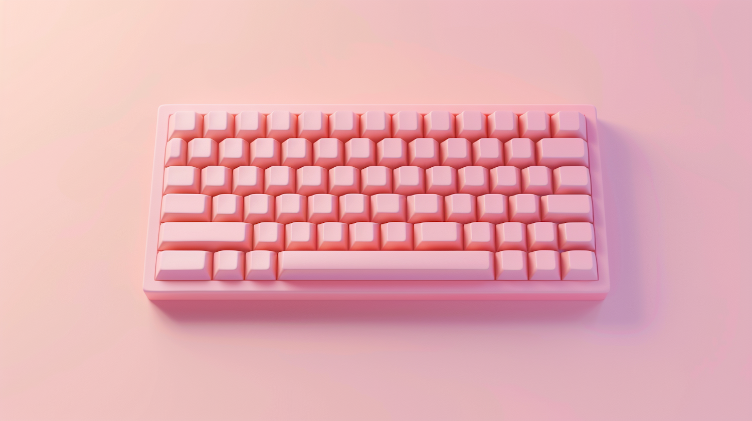 Minimalist pink mechanical keyboard with sculpted keycaps on a soft pastel background, perfect for aesthetic desk setups.