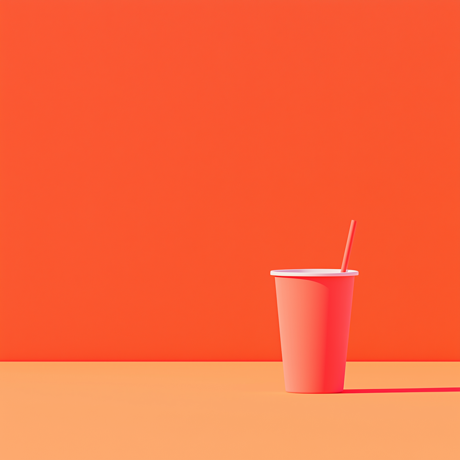 Minimalist orange scene with a single orange cup and straw on an orange background, creating a bold monochromatic aesthetic.