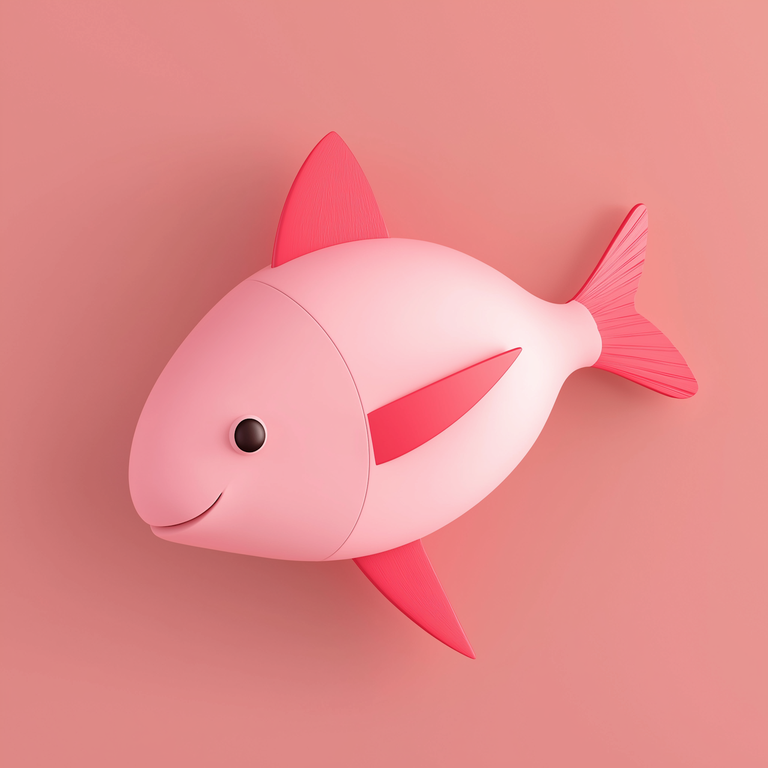A cute pink 3D fish with darker pink fins and a soft smile, set against a matching pink background. Perfect for playful designs.