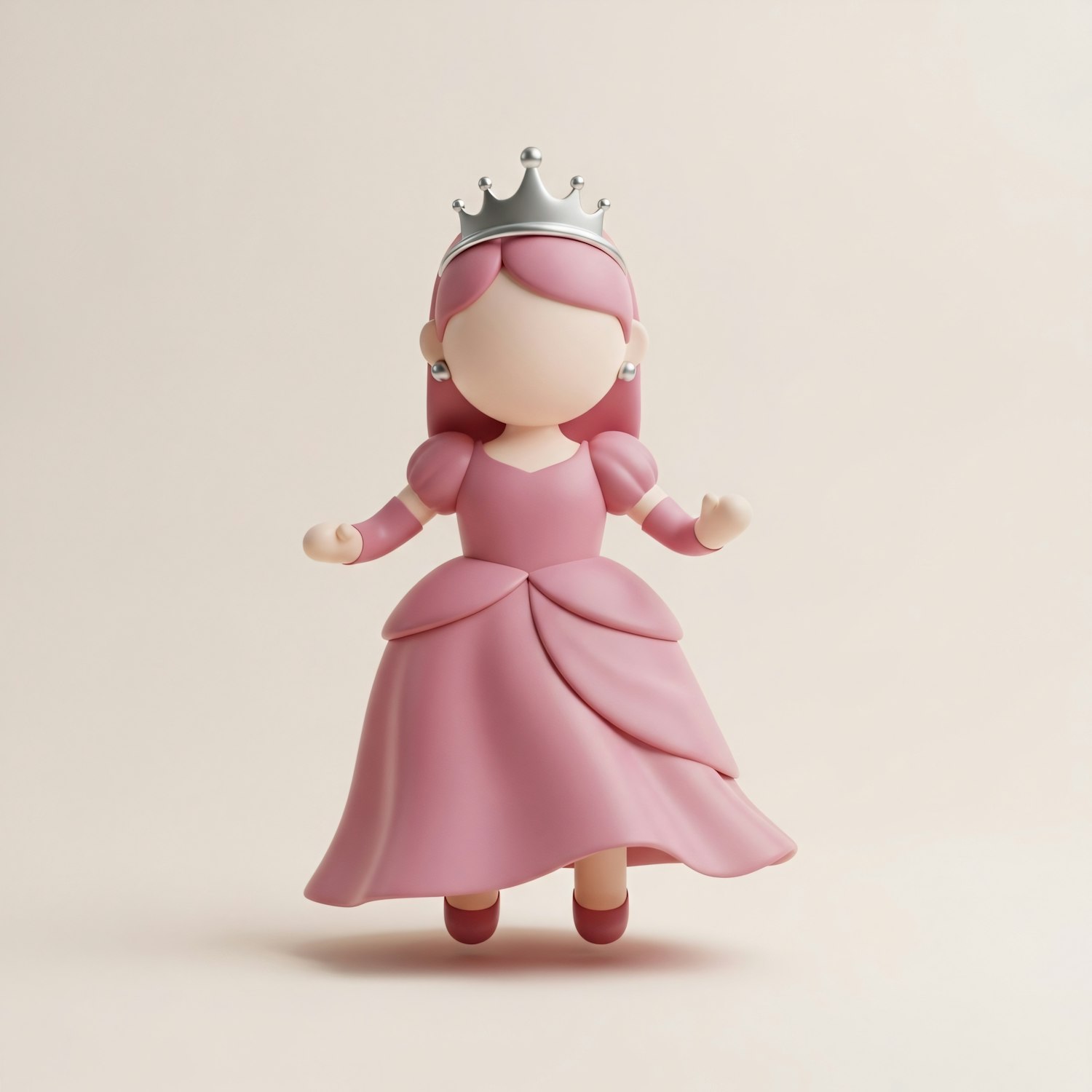 A charming 3D illustration of a princess in a pink gown and silver crown, perfect for children's themes or creative projects.