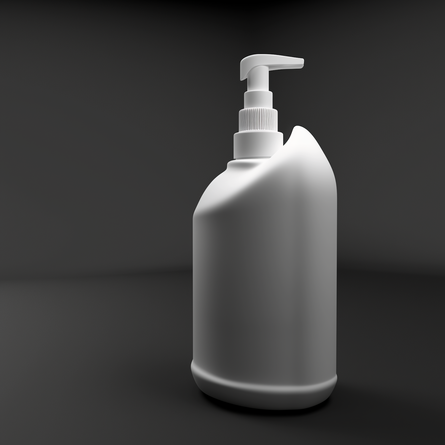 Sleek 3D rendering of a white pump bottle with a modern design, set against a dark gray background. Perfect for product mockups.