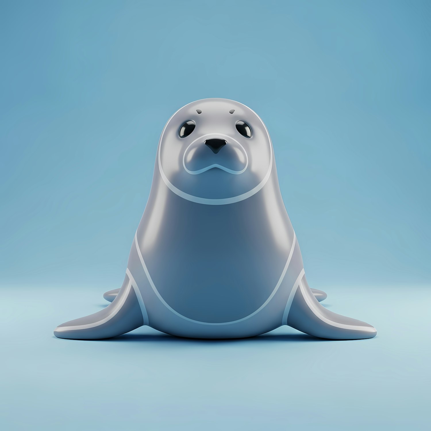 A cute 3D-rendered seal with a glossy finish and minimalist design, set against a light blue gradient background.