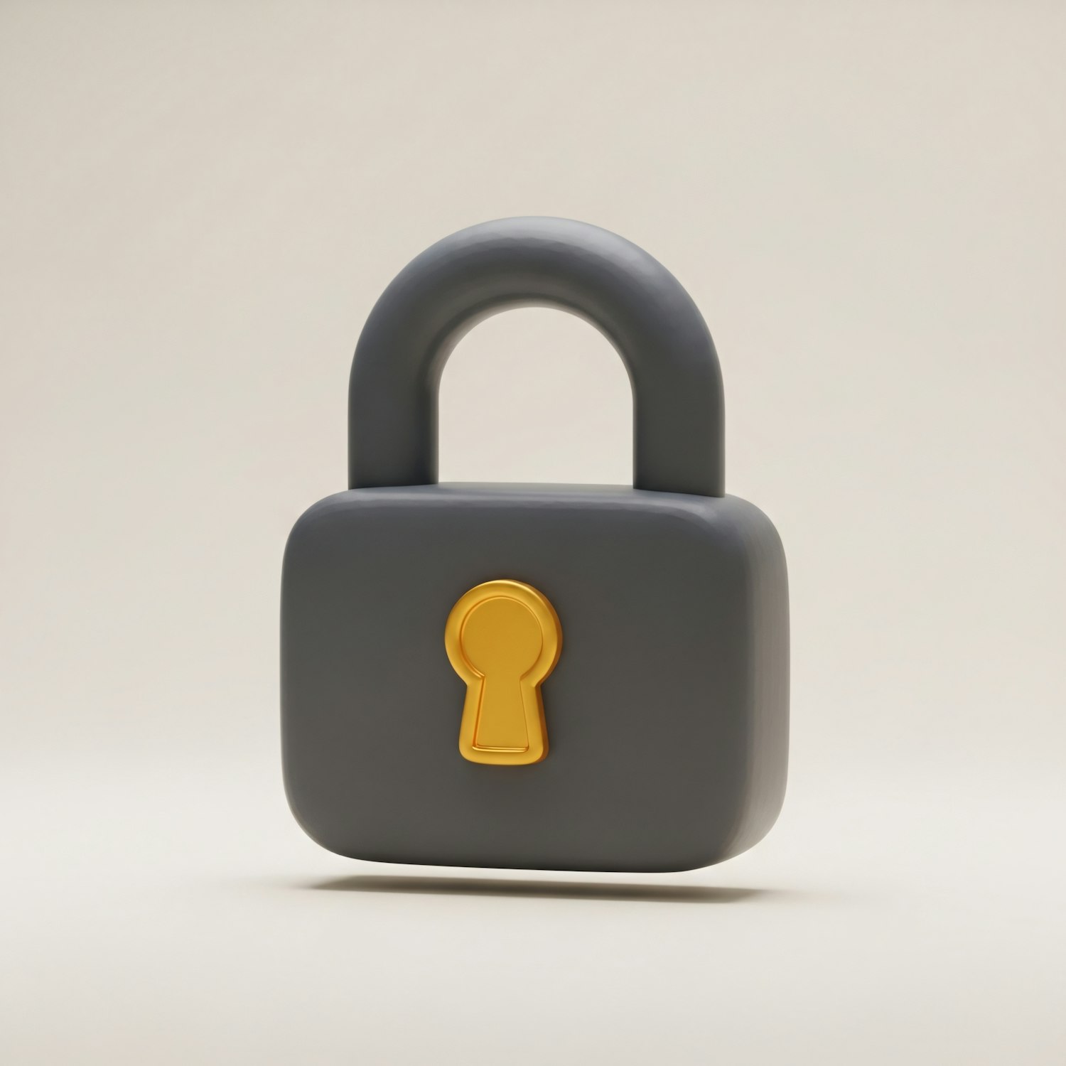 A modern 3D-rendered padlock with a gray body and golden keyhole, set against a neutral background for a clean, minimalistic look.