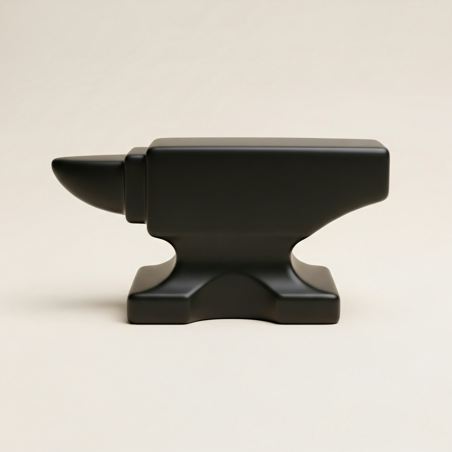 A modern black anvil with a sleek design, set against a neutral background, showcasing its minimalist and polished aesthetic.