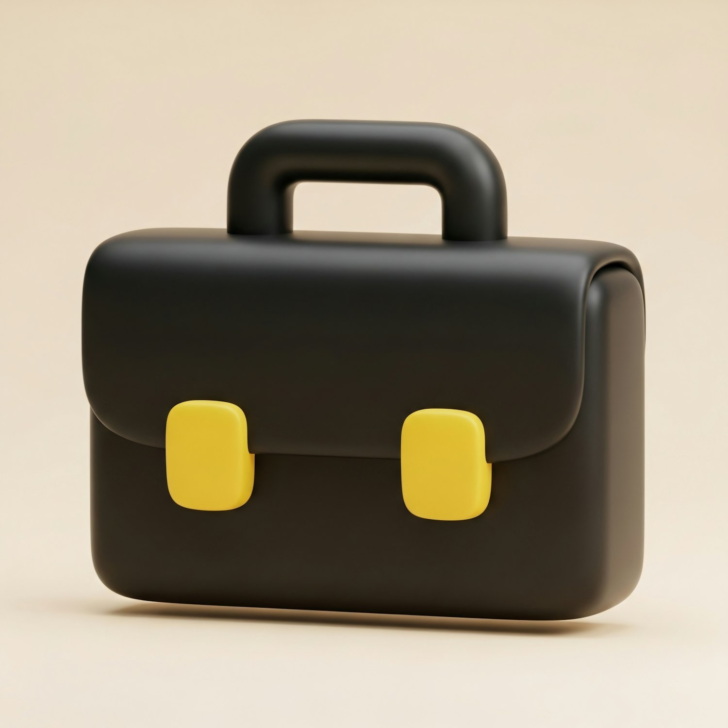 A modern black briefcase with yellow clasps, featuring a sleek and minimalist design, set against a neutral background.