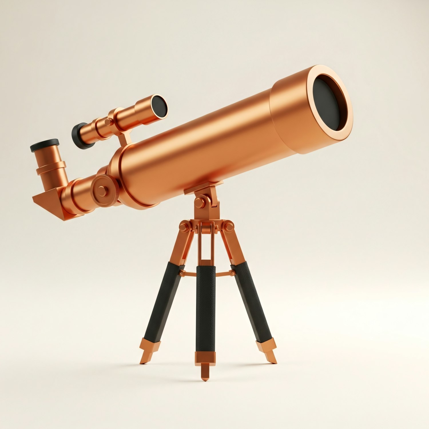 A stylish copper telescope on a tripod, featuring a sleek design and black accents, perfect for stargazing or as a decorative piece.