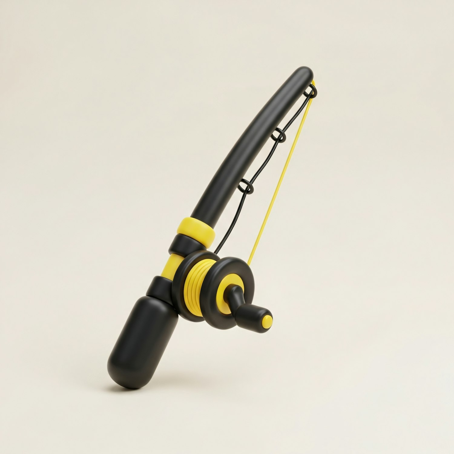 A modern black and yellow fishing rod with a sleek design, set against a neutral background, showcasing its minimalistic style.