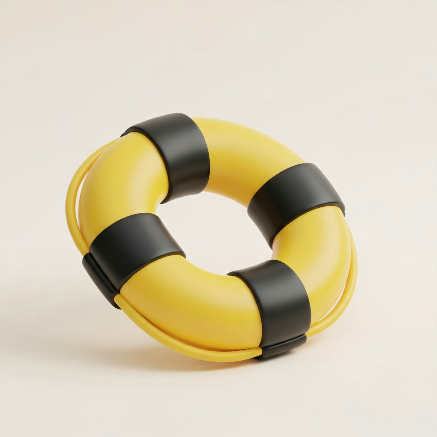 A sleek yellow and black lifebuoy with a modern design, set against a neutral background, showcasing its minimalistic aesthetic.