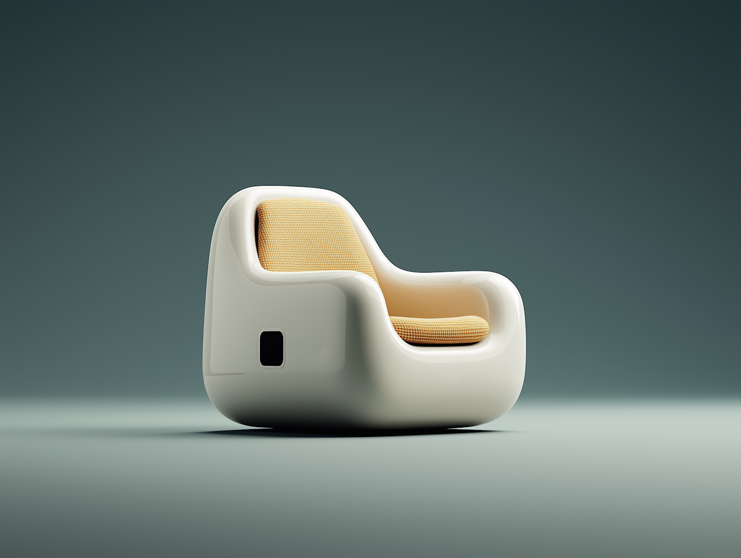 Sleek modern armchair with a glossy white frame and yellow cushions, perfect for minimalist interiors. Stylish and comfortable design.