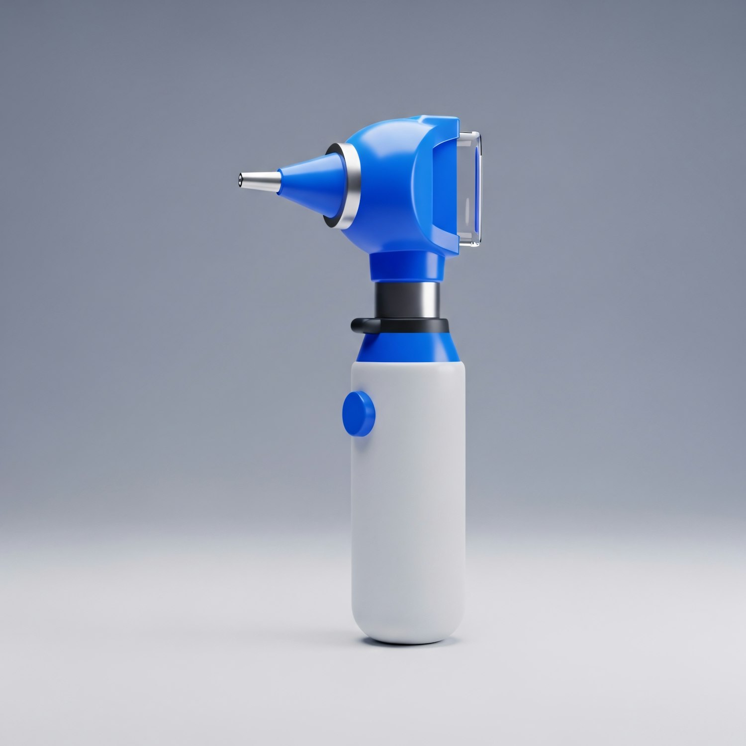 A sleek blue and white otoscope with a modern design, perfect for medical professionals. Clean and professional look.