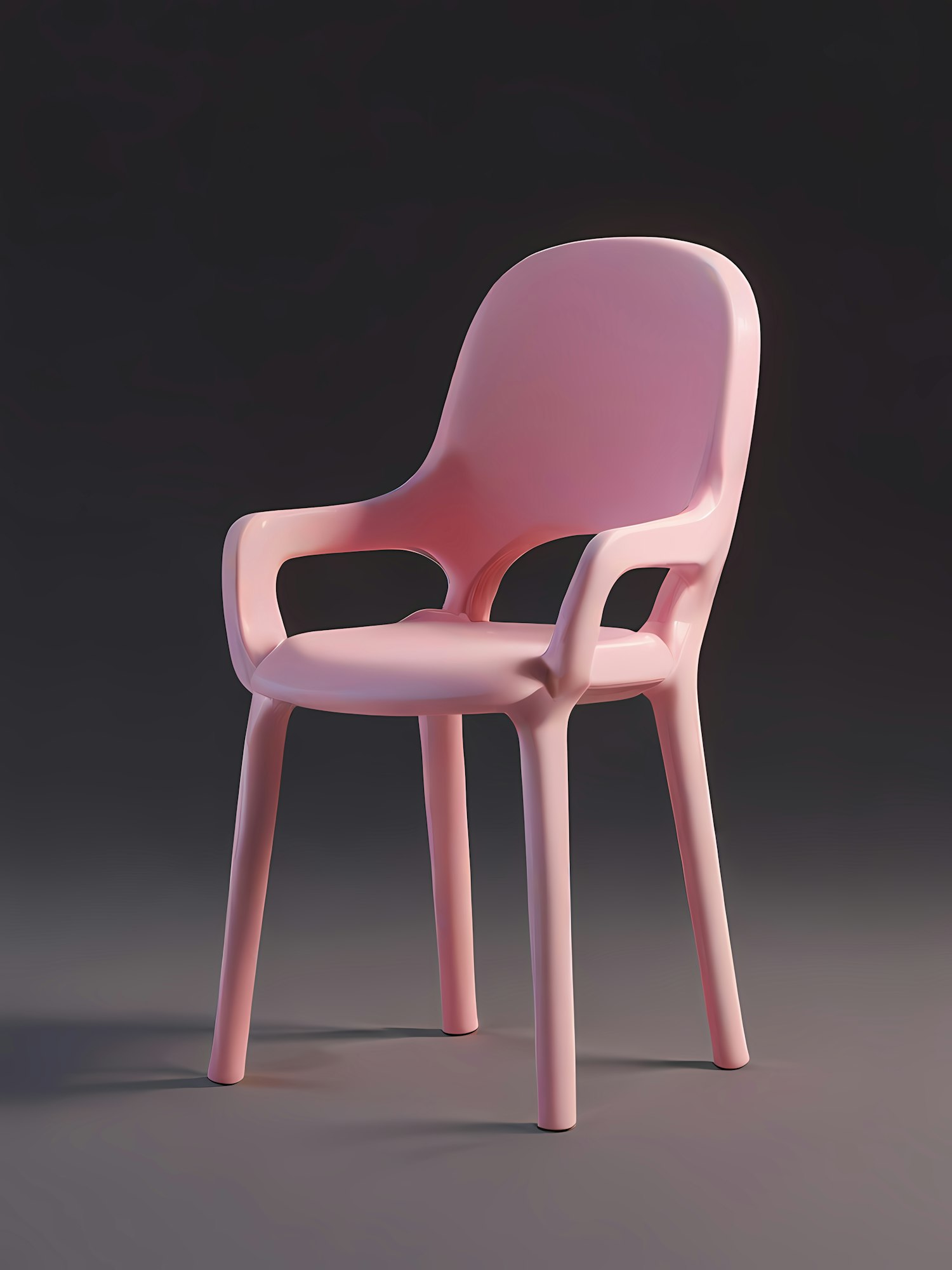 Modern pink plastic chair with rounded backrest and armrests, perfect for contemporary spaces. Sleek, glossy finish and ergonomic design.