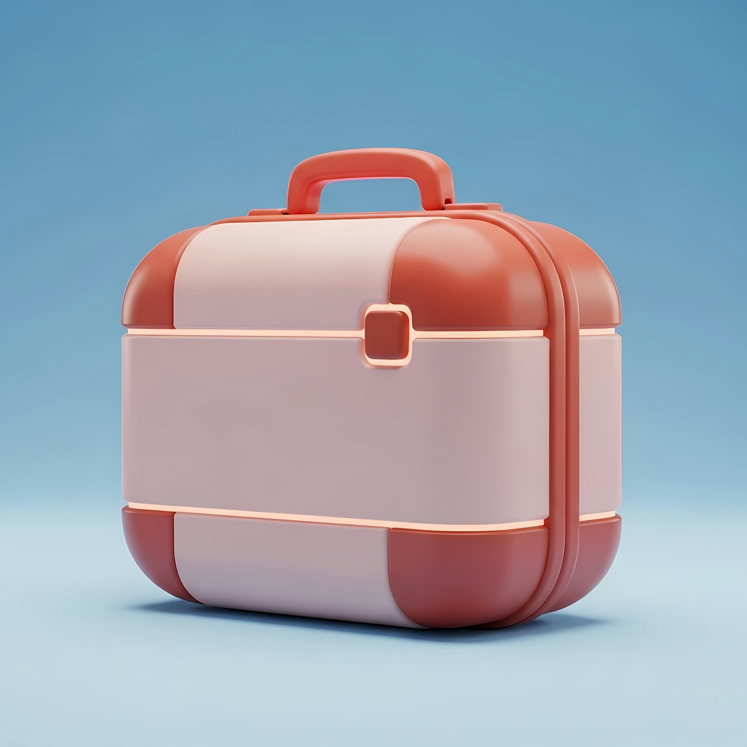 Stylish 3D-rendered suitcase with a pink and red design, perfect for modern travel aesthetics. Minimalist and sleek look.