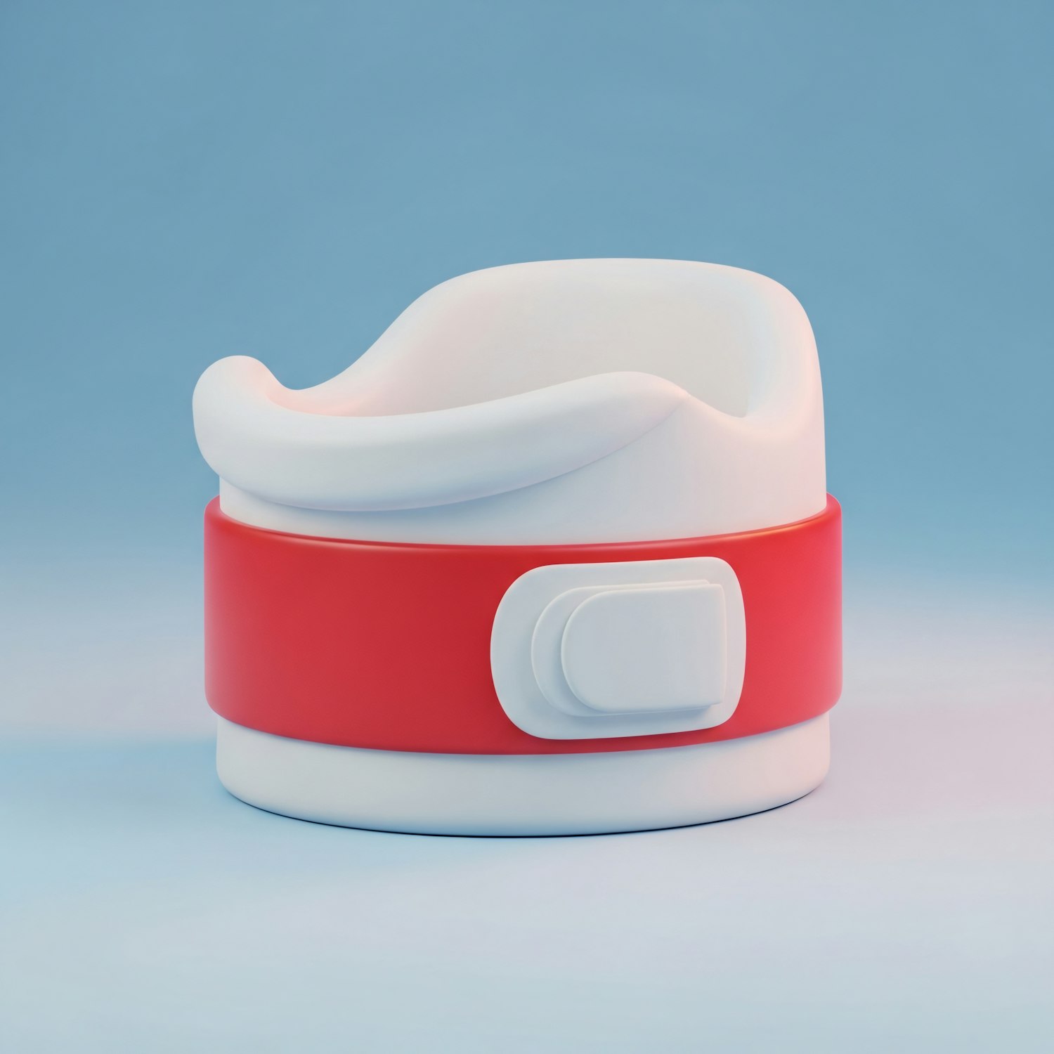 A sleek white and red child's potty seat with a modern design, set against a soft blue background, showcasing its ergonomic and functional features.