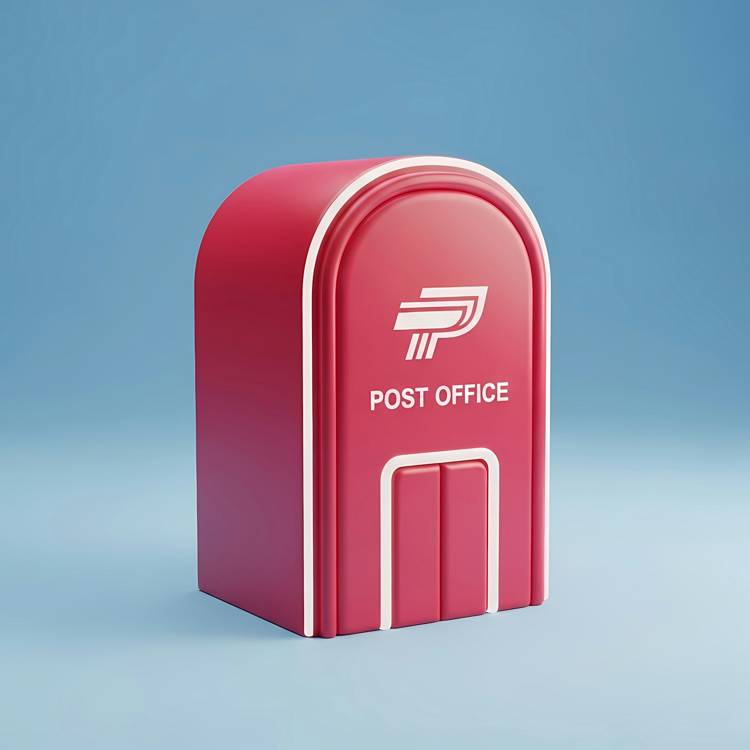 A modern red mailbox with 'POST OFFICE' text and logo, set against a gradient blue background, rendered in a clean 3D style.