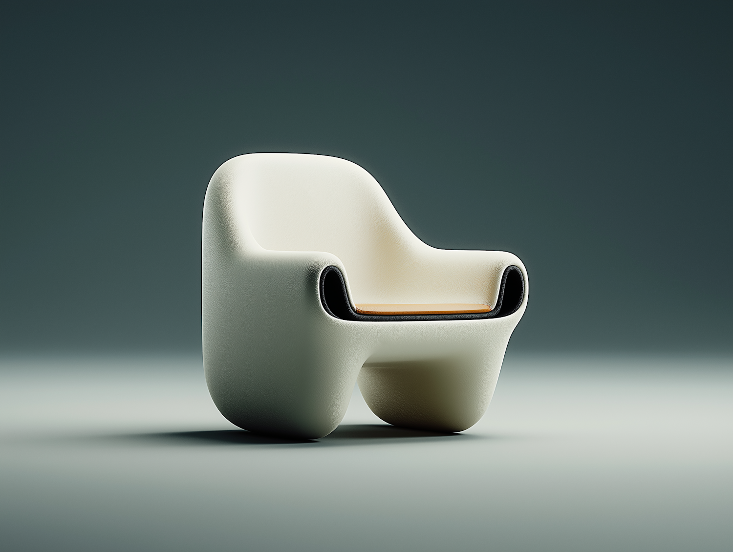 Sleek modern chair with a cream matte finish, curvy design, and wooden seat accent. Perfect for contemporary interiors.
