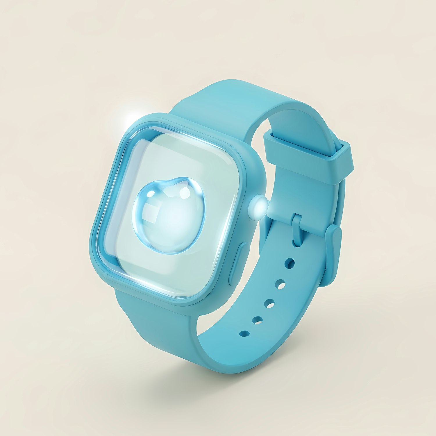 Stylish blue smartwatch with a futuristic bubble-like display, set against a soft beige background. Perfect for tech and design enthusiasts.