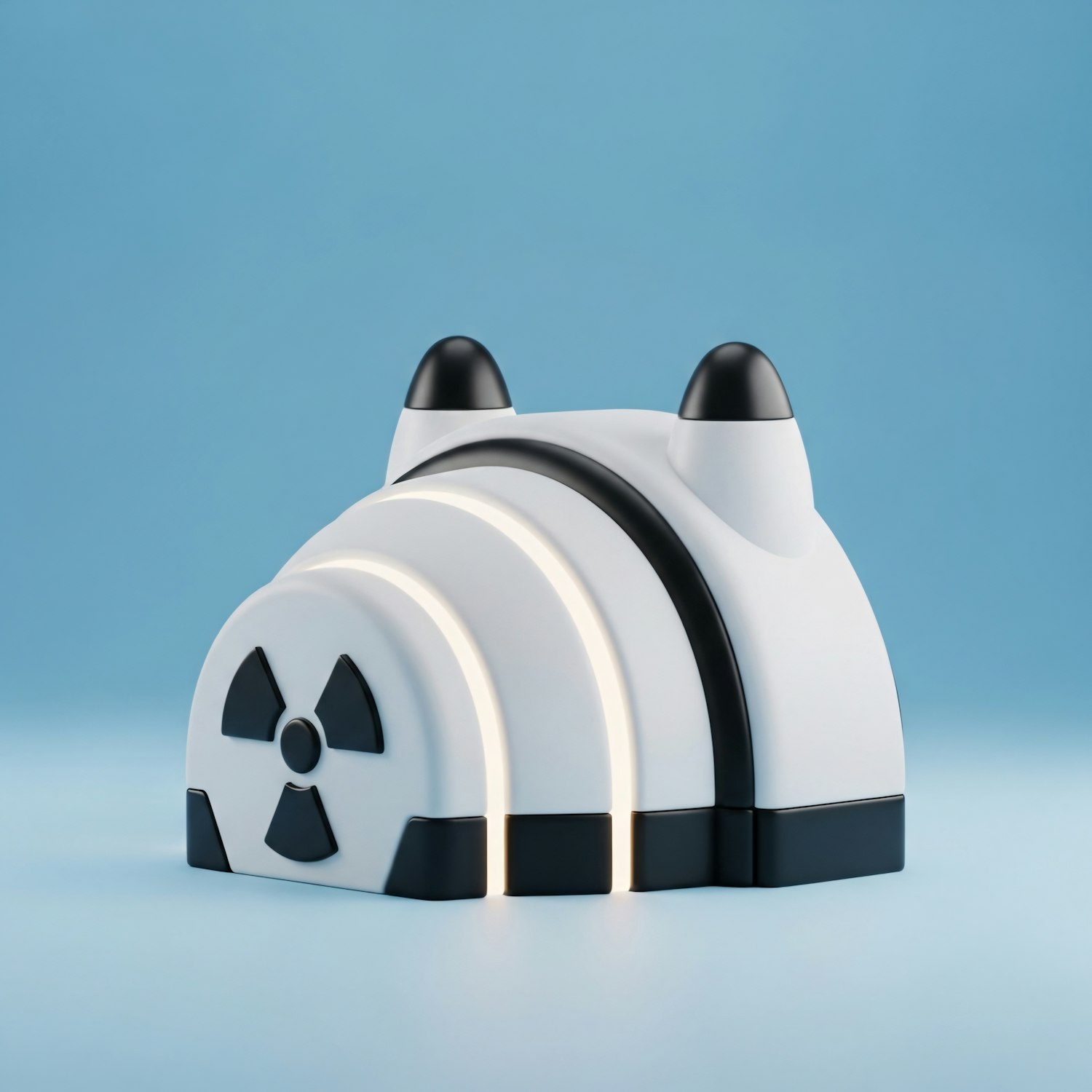 A modern, stylized object with a radiation symbol, sleek design, and a light blue background, perfect for creative or industrial themes.