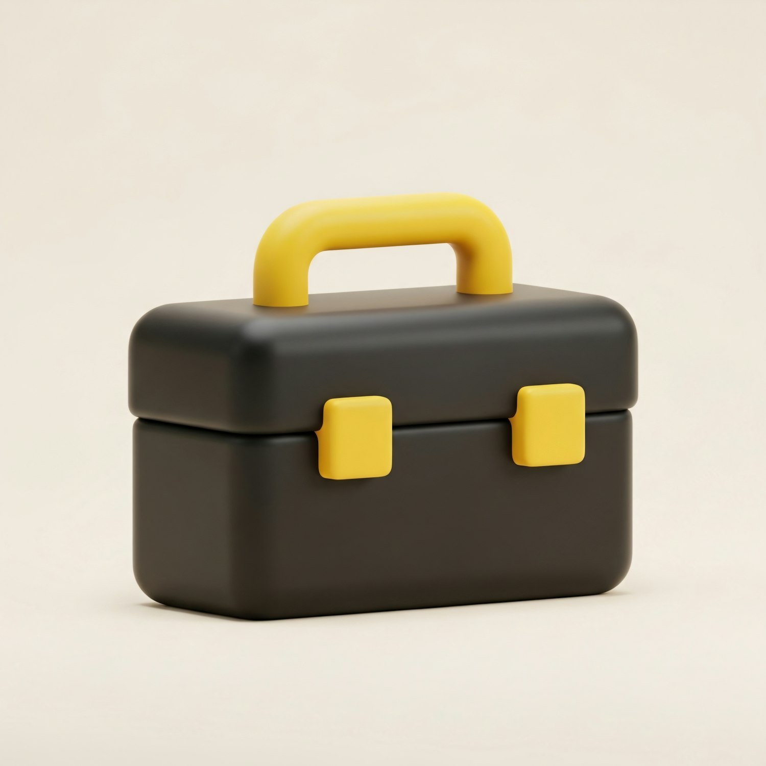 A sleek black toolbox with yellow accents, featuring a modern design and rounded edges, set against a neutral beige background.