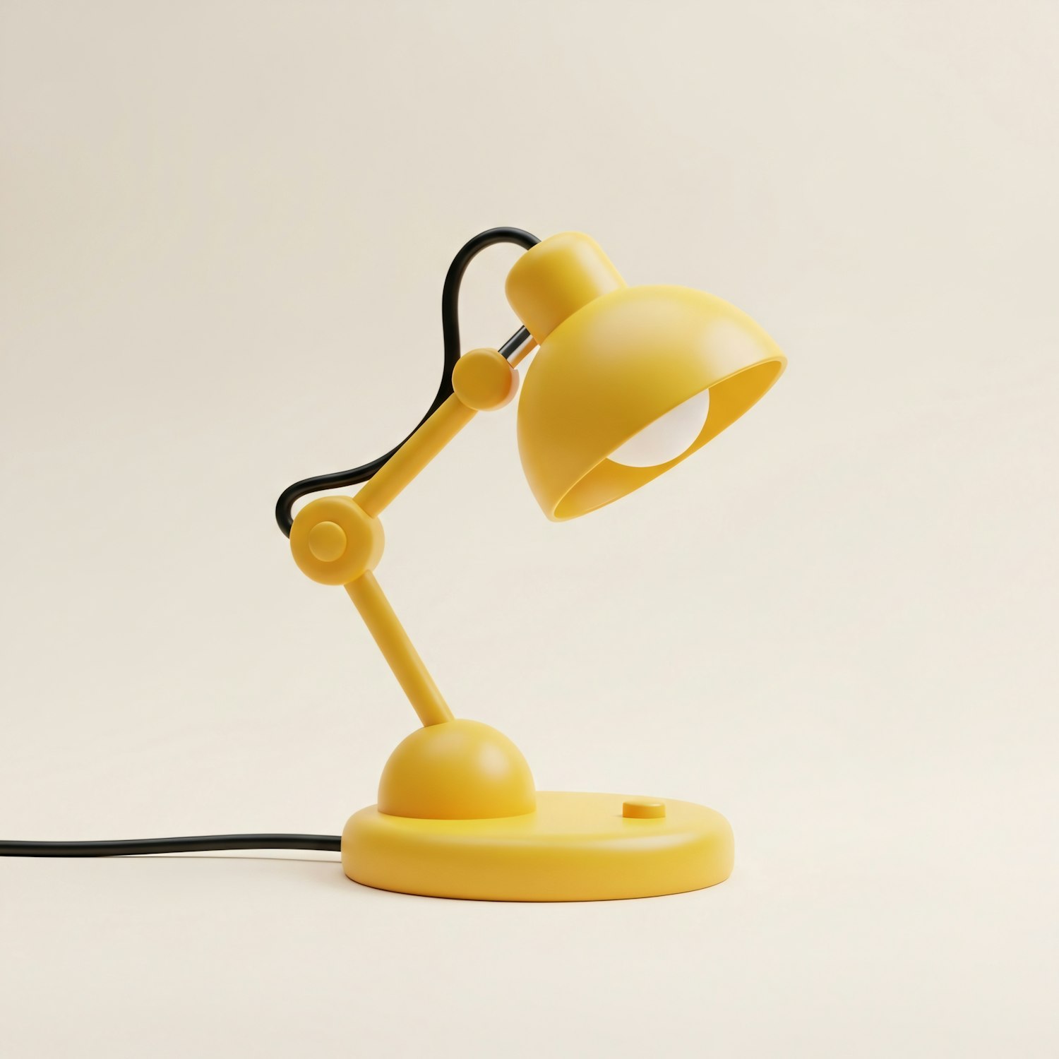 Bright yellow desk lamp with a modern design, featuring an adjustable arm and dome-shaped shade, perfect for a stylish workspace.