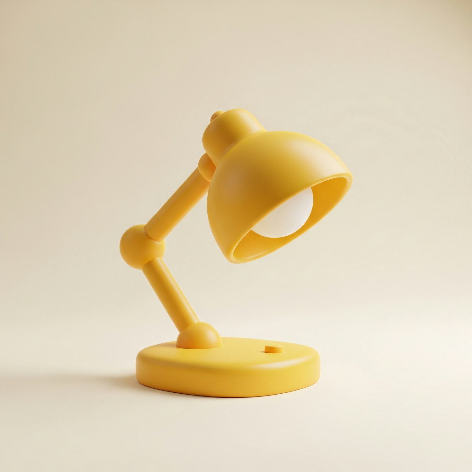 A vibrant yellow desk lamp with a sleek, modern design, set against a neutral background, showcasing its minimalist aesthetic.