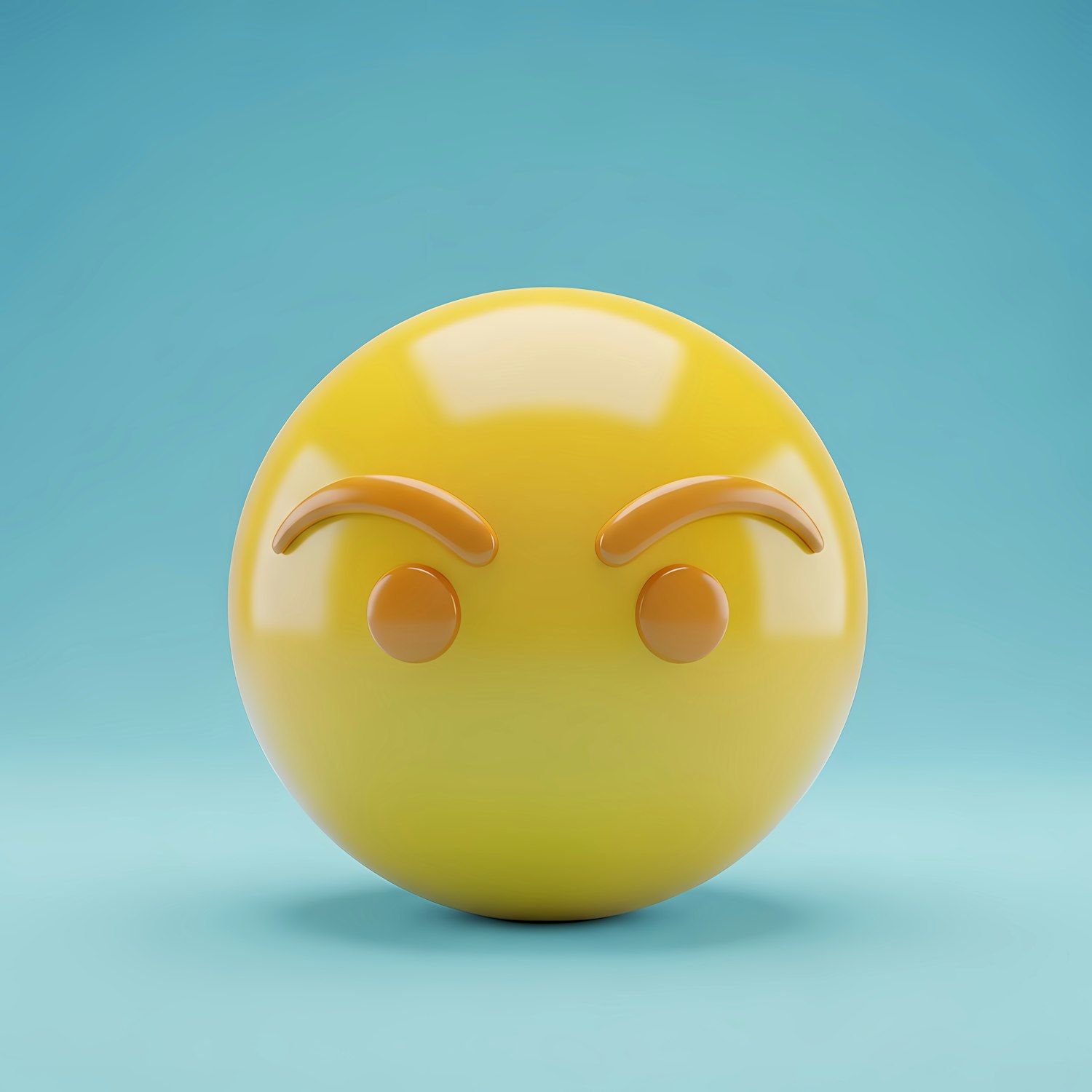 A 3D yellow emoji with raised eyebrows on a light blue background, perfect for expressing curiosity or skepticism.