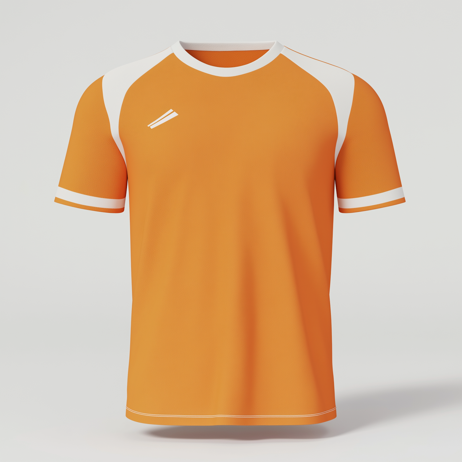 Vibrant orange sports jersey with white accents and a minimalist logo, perfect for athletic activities.