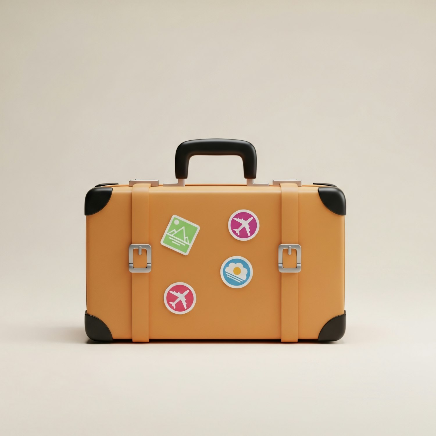 A bright orange suitcase with travel stickers, perfect for adventure enthusiasts, set against a neutral background.