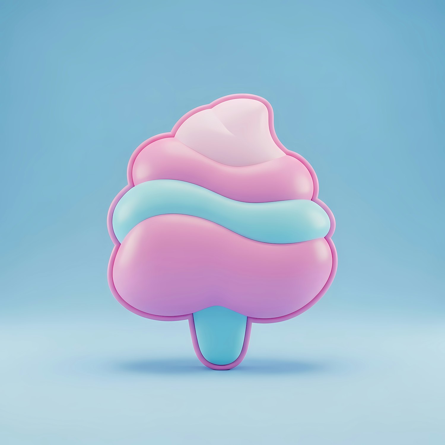 Cute pastel pink and blue cotton candy illustration on a soft blue background, perfect for sweet-themed designs.