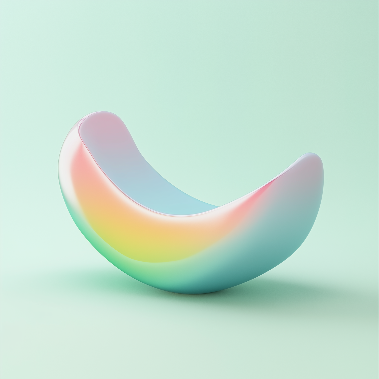 A crescent-shaped object with a pastel rainbow gradient on a mint green background, blending modern design with soft, soothing colors.