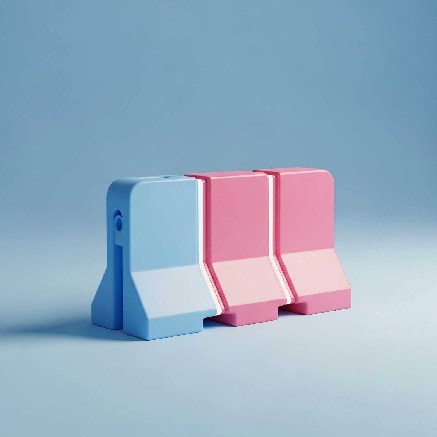 Minimalist pastel-colored geometric objects on a light blue background, showcasing modern design and clean lines.