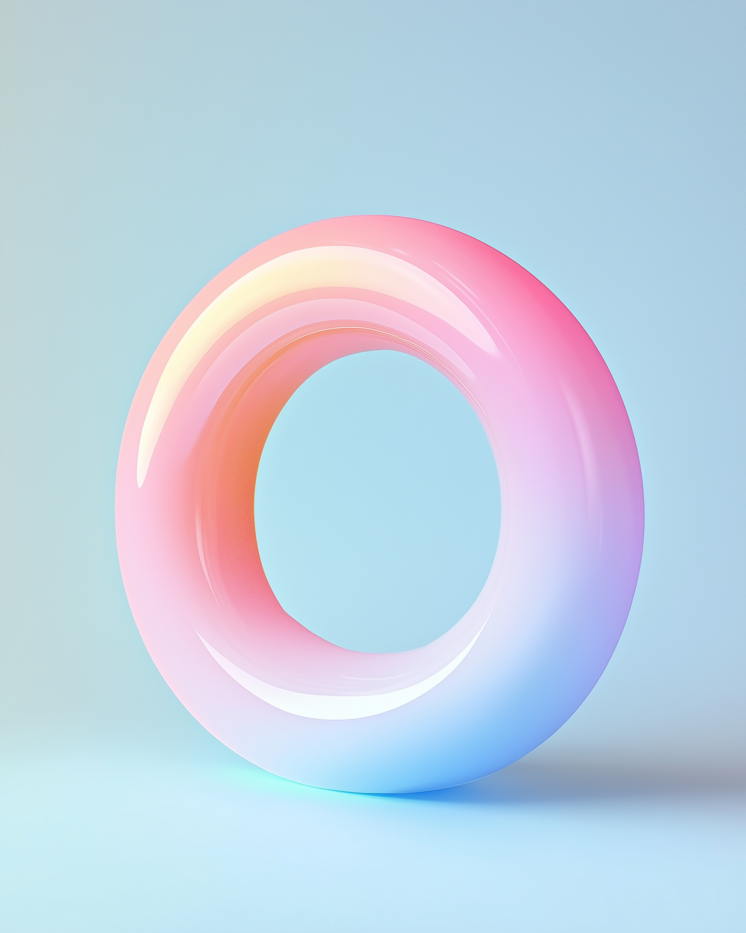 A glossy pastel gradient torus in pink and blue hues, set against a soft blue background, creating a modern and artistic vibe.