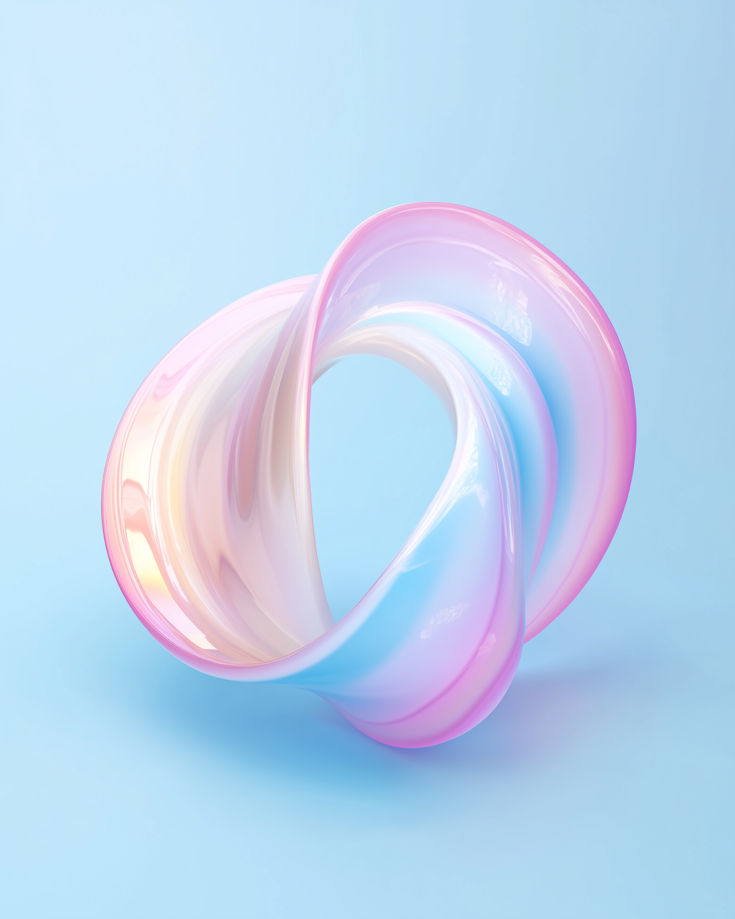 A glossy pastel 3D loop with pink, blue, and yellow hues on a light blue background, creating a dreamy and modern abstract design.