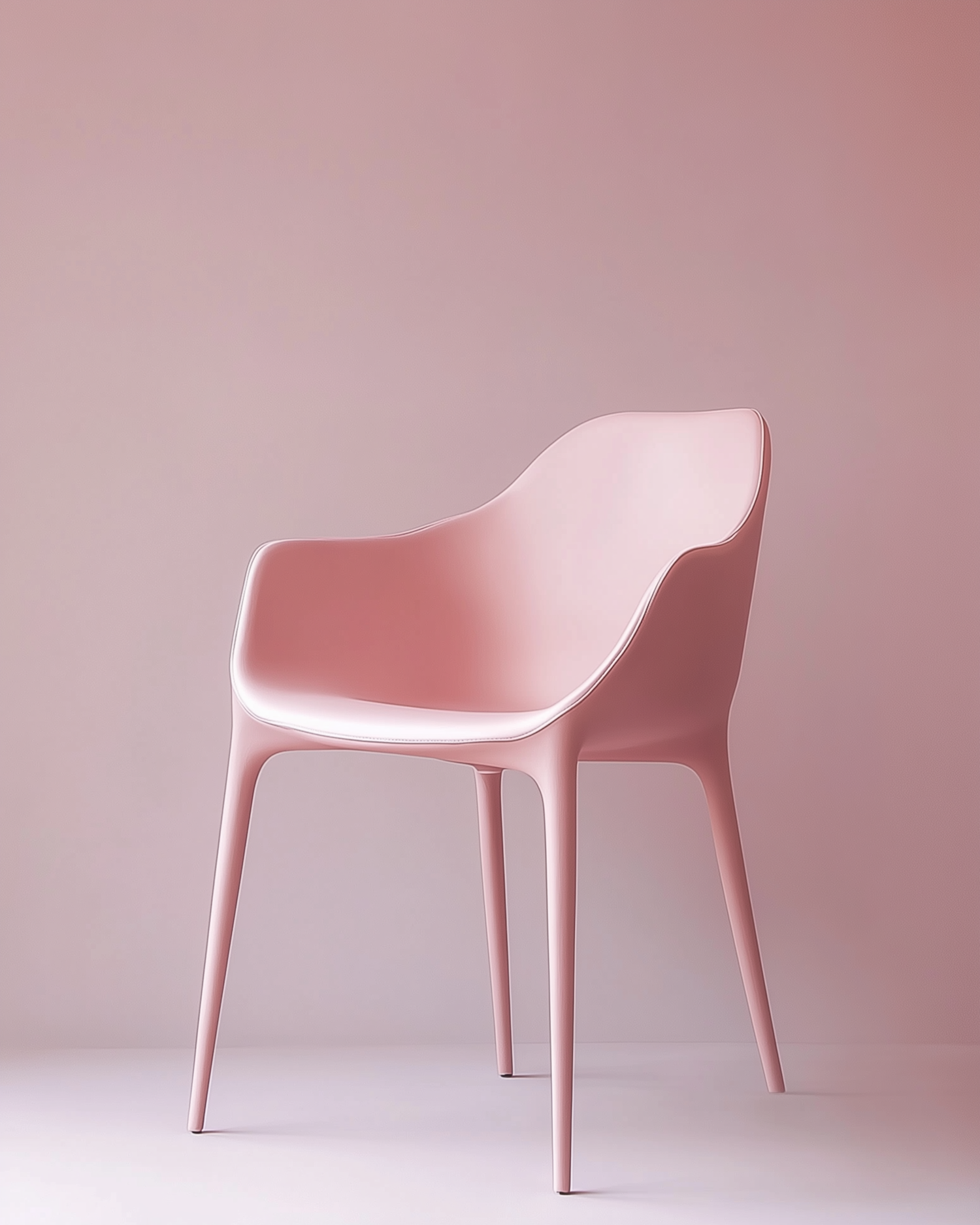 Minimalist pastel pink chair with smooth curves and a sleek design, perfect for modern interiors. A chic addition to any space.