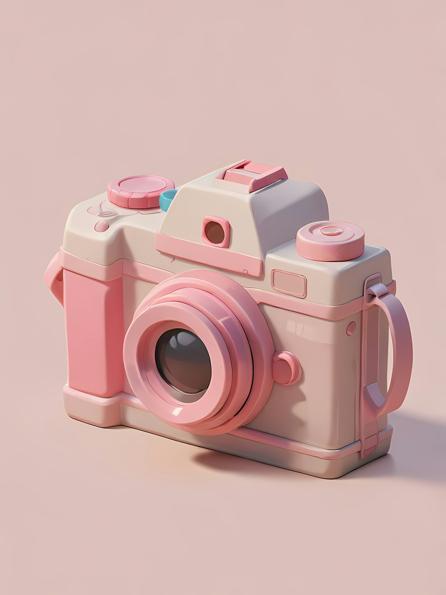 A charming pastel pink and cream retro-style camera with a glossy finish, perfect for vintage and aesthetic lovers.