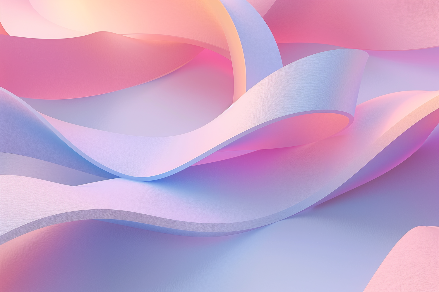Abstract pastel ribbons in pink, blue, and peach create a serene and flowing visual with smooth textures and gentle curves.