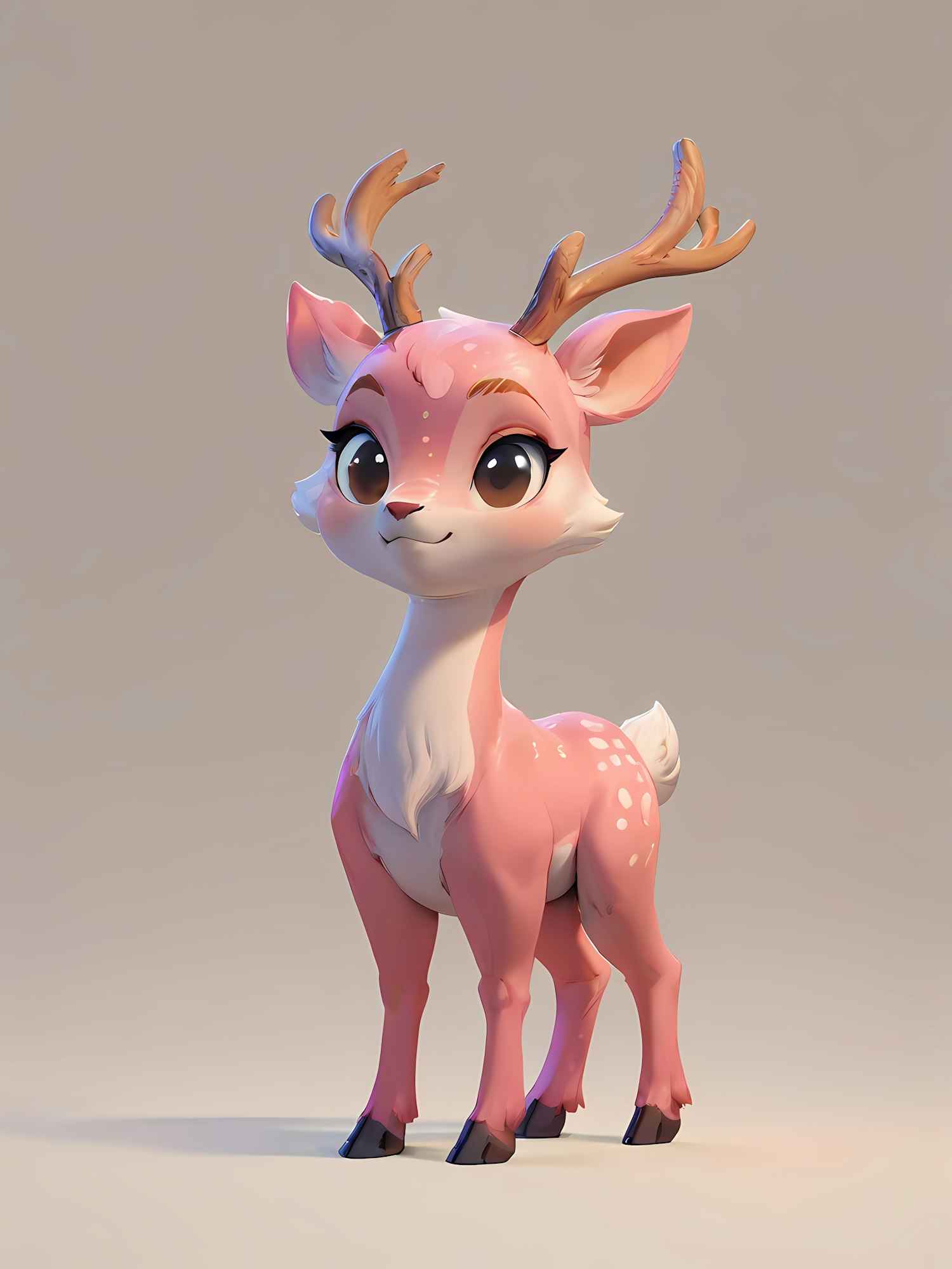 Adorable pink deer with white spots and delicate antlers in a whimsical 3D illustration. Perfect for fantasy or children's themes.