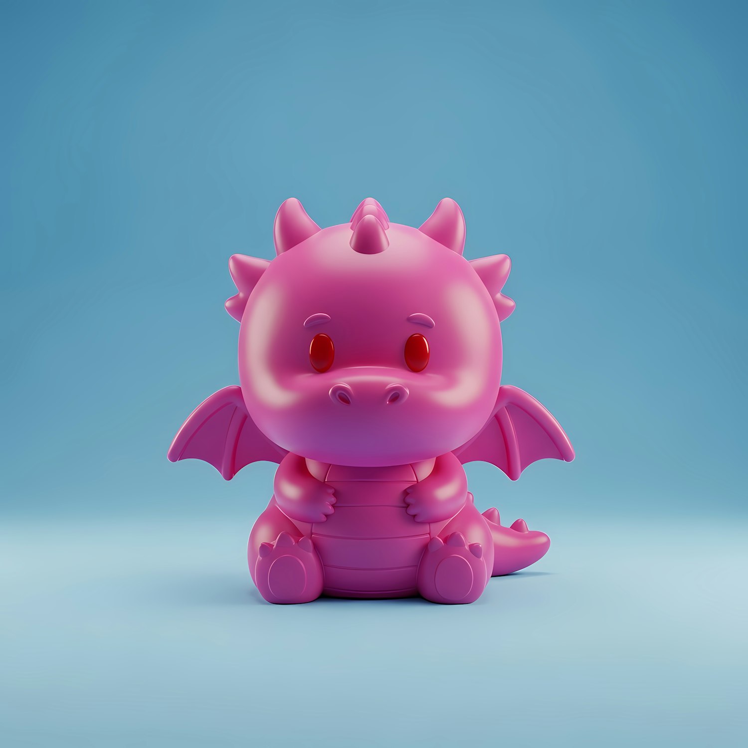 Adorable pink dragon figurine with a glossy finish, sitting against a light blue background. Perfect for fantasy and toy enthusiasts!