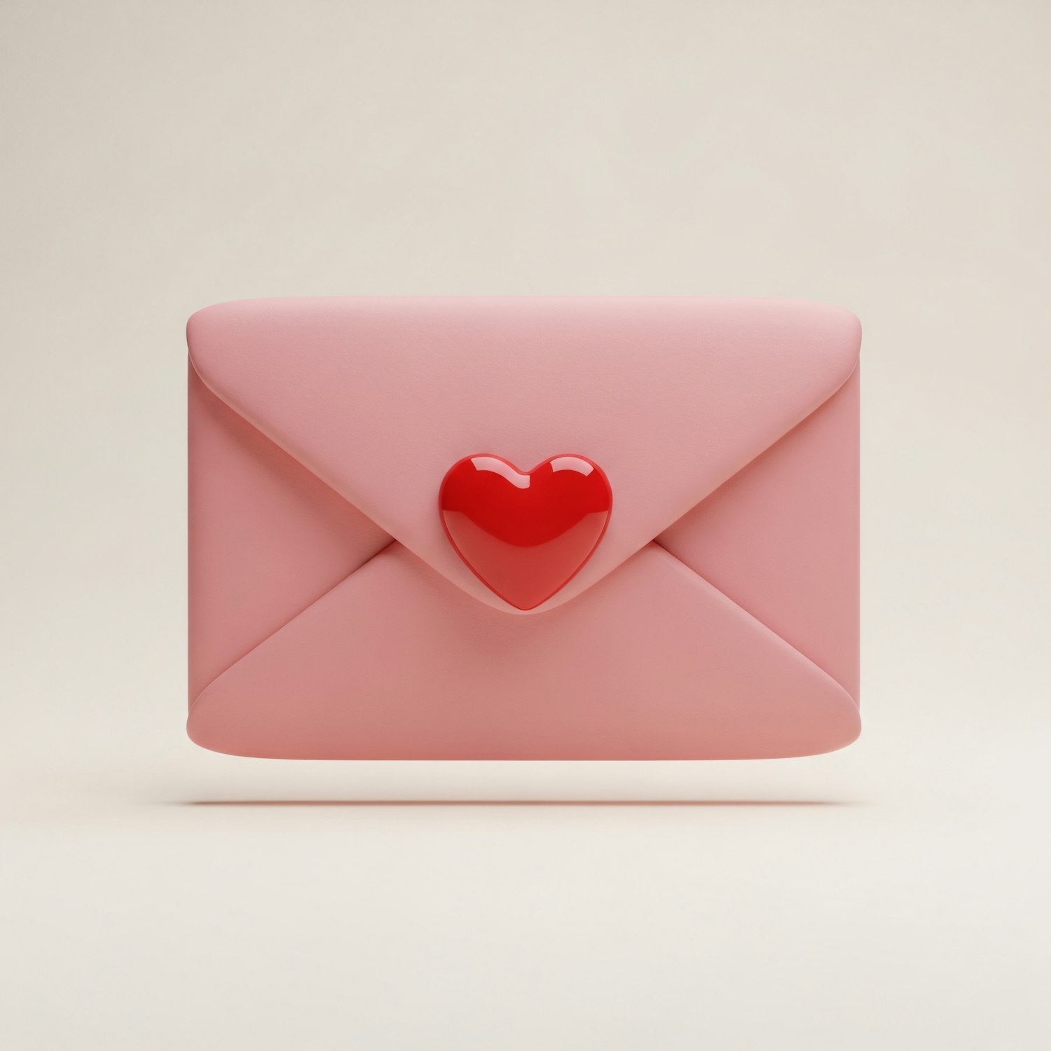 A pink envelope with a glossy red heart seal, set against a neutral background, symbolizing love and affection.