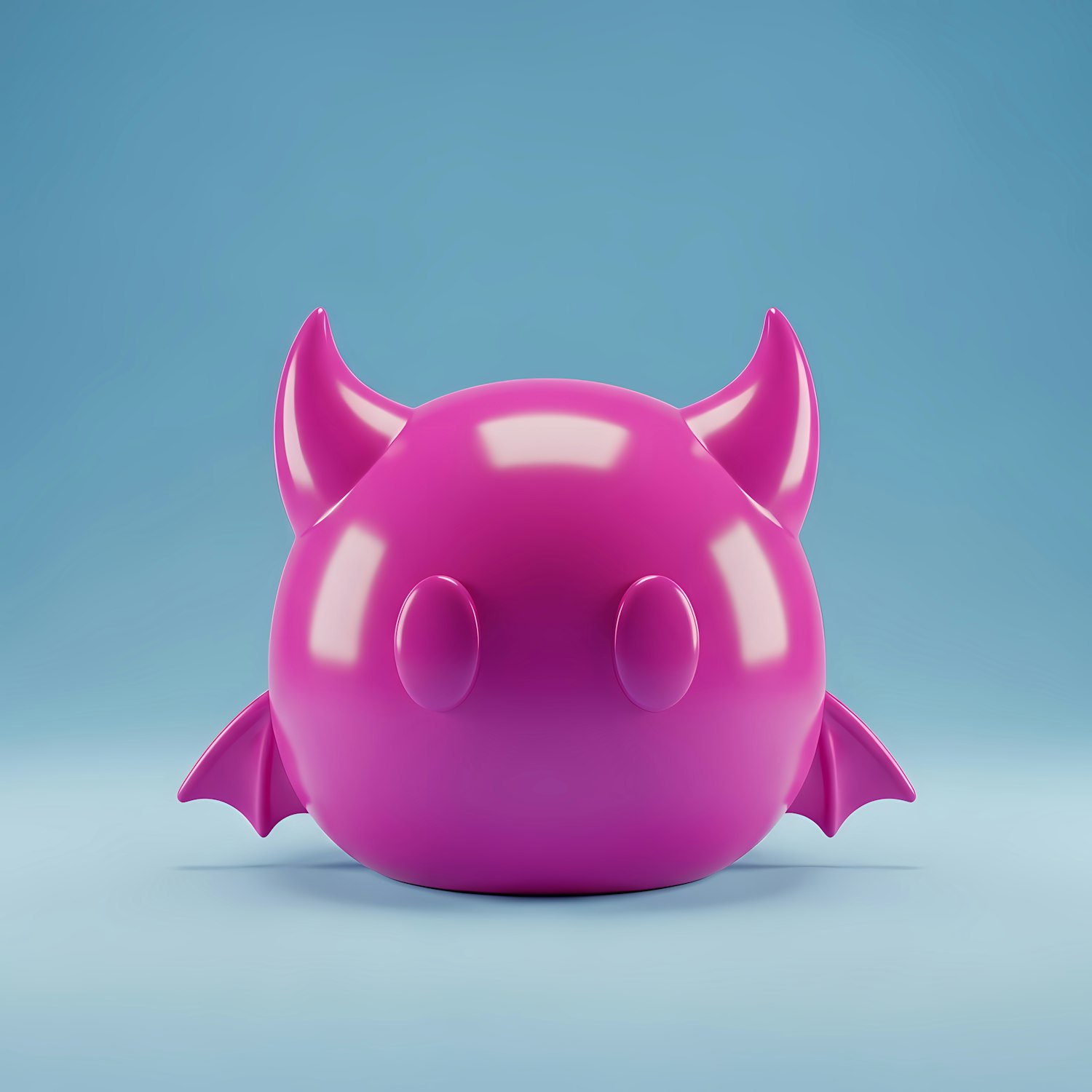 Adorable 3D pink creature with horns and wings on a light blue background. Perfect for playful and creative designs.
