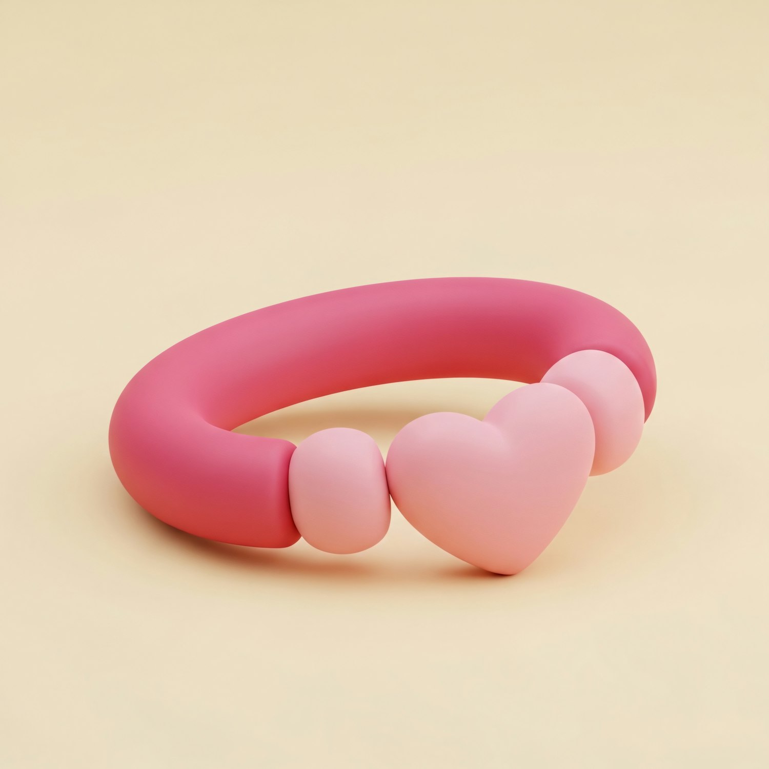 A pink bracelet with a heart charm and beads on a pastel yellow background, showcasing a playful and stylish design.