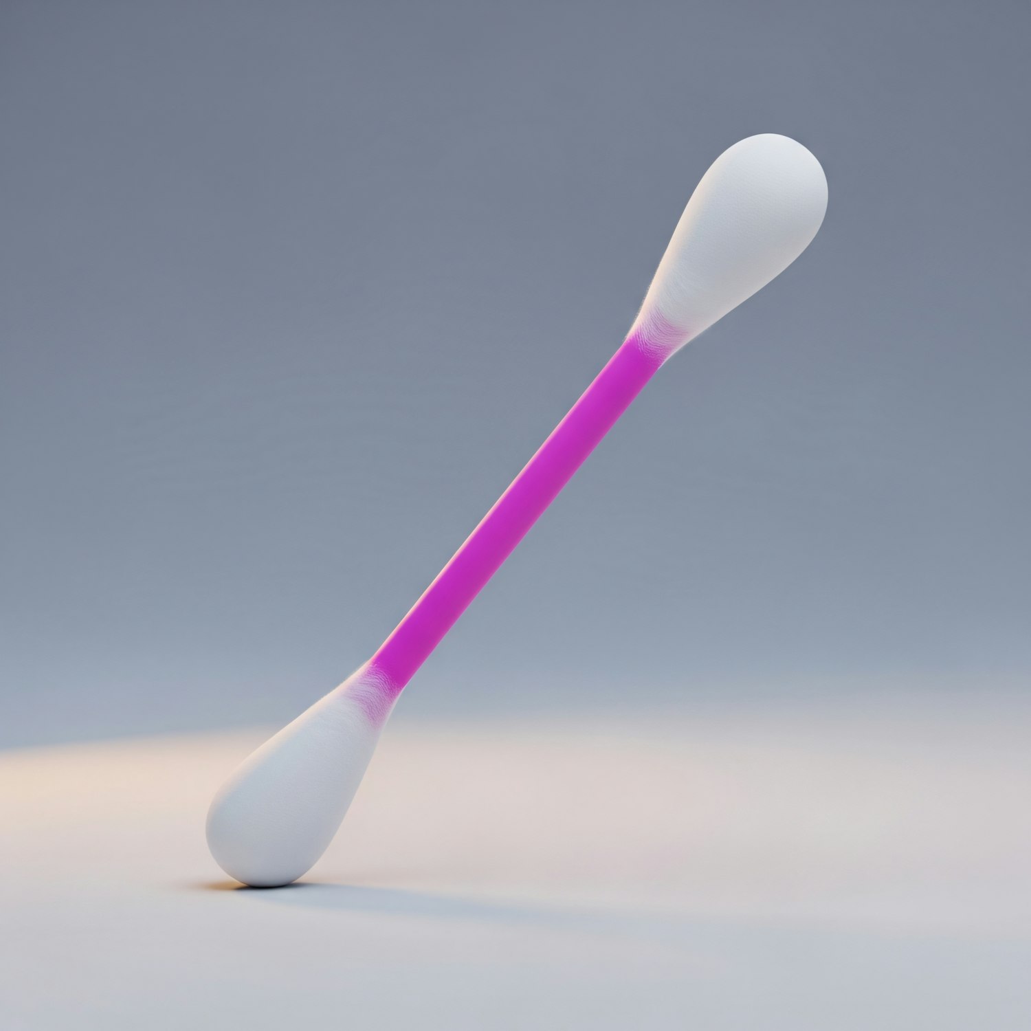A cotton swab with a pink stem and white tips, displayed on a gradient gray background, showcasing its clean and modern design.
