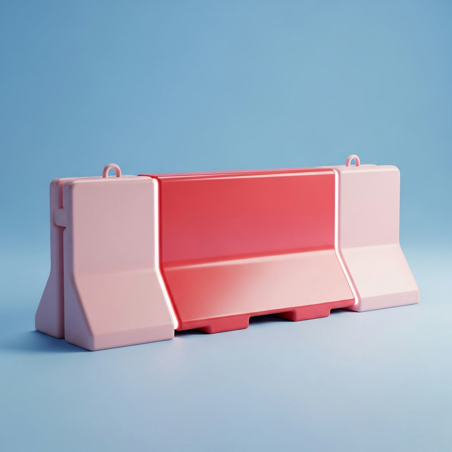 A pink and red plastic traffic barrier on a light blue background, showcasing a clean and modern design with a glossy finish.